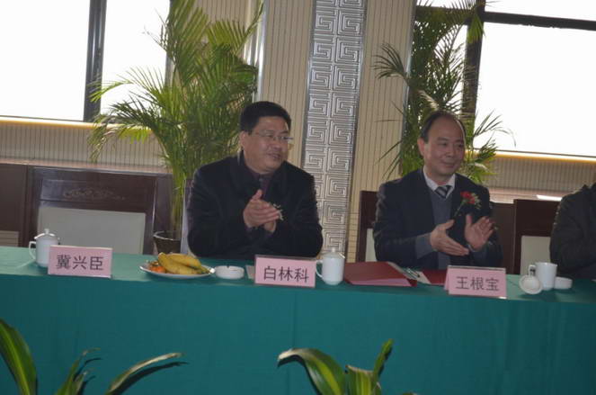 白林科副總經(jīng)理和王隊長鼓掌祝賀簽約圓滿成功