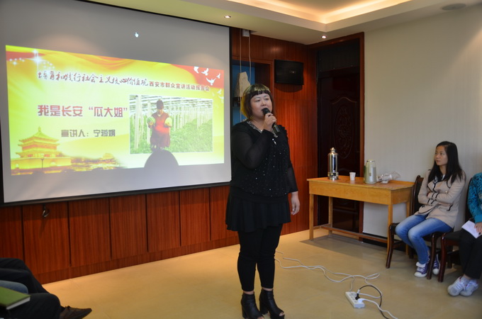 此次報(bào)告會(huì)共有五位宣講員分別作了聲情并茂的宣講,引起了現(xiàn)場(chǎng)觀眾的共鳴。未央?yún)^(qū)七旬文明引導(dǎo)員李清源,用自己的親身經(jīng)歷講述文明故事;工商臨潼分局丁紅軍講述了為外國(guó)游客討回26000元的故事;臨潼區(qū)西泉街道閆紅,講述半路夫妻的公公對(duì)臥病在床多年的婆婆不離不棄的感人故事;帶領(lǐng)農(nóng)民共同致富的長(zhǎng)安區(qū)農(nóng)民企業(yè)家寧蔣娟講述了自己的艱辛的奮斗歷程;長(zhǎng)安東大的上門(mén)女婿劉安民待岳母如親娘,感動(dòng)鄉(xiāng)鄰,他用行動(dòng)詮釋了“百善孝為先”的古訓(xùn)。宣講員以親歷親聞的身邊人身邊事,對(duì)社會(huì)主義核心價(jià)值觀進(jìn)行了詮釋?zhuān)?lì)和感染了每一位員工,會(huì)場(chǎng)不斷爆發(fā)出熱烈的掌聲。