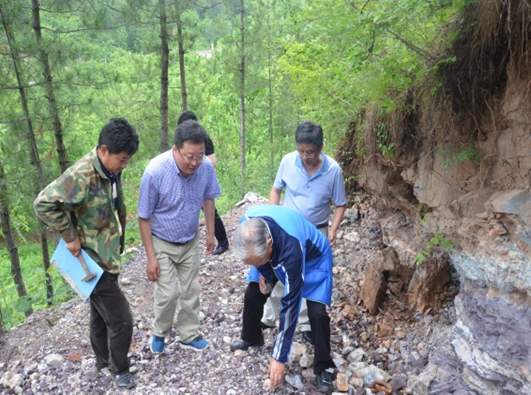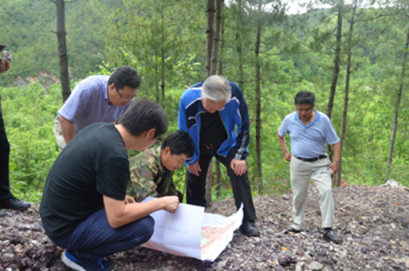 下午二點(diǎn)左右,老部長(zhǎng)一行在劉曉東隊(duì)長(zhǎng)和總工白和的陪同下到達(dá)洛南縣石門鎮(zhèn)項(xiàng)目部駐地,雖然年近八旬,但精神矍鑠,神采奕奕,不顧鞍馬勞頓,即讓技術(shù)人員將圖紙攤在了汽車引擎蓋上,聽取了隊(duì)長(zhǎng)劉曉東、總工白和對(duì)商洛地區(qū)紫瑪瑙玉石礦賦存情況及全省寶玉石礦調(diào)查工作進(jìn)展的匯報(bào)。