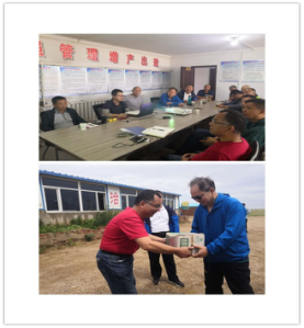潘發明一行來到達茂旗銅礦項目駐地后,首先,仔細查看了辦公區域和員工生活區,并同項目部同志一一握手問好。隨后,一行人聽取了項目部技術人員與合作方的匯報,潘發明表示,同志們在項目開工的一年時間內陸續克服了前期工程部無序開采對礦區的破壞、疫情防控、地緣差別及各項技術難題,取得了現在的成績實屬不易,并對項目前期的工作和下步工作計劃給予了充分肯定。他強調,一是提高政治站位,依法依規開展各項工作;二是六隊與合作方要各自發揮自身優勢,同心協力做好項目,特別是六隊要發揮好國企的技術和社會責任擔當,更要在當地樹立起六隊和陜西地礦的標桿;三是發揮地“三光榮”、“四特別”的地礦精神,在項目的技術研究上多下功夫,多探討研究,在生產工作中要實行標準化管理,做到政治安全,保證人身安全。