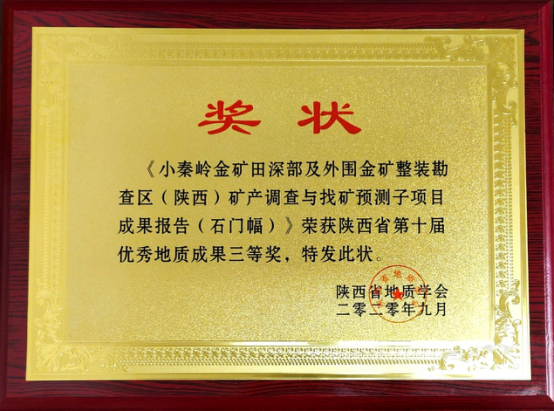 我公司一項(xiàng)目喜獲陜西省地質(zhì)學(xué)會(huì)第十屆優(yōu)秀地質(zhì)成果獎(jiǎng)