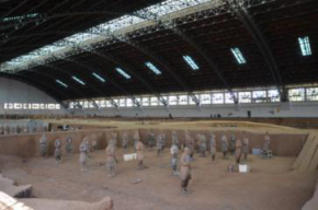 秦始皇兵馬俑博物館,是建立在兵馬俑坑原址上的遺址性博物館。被譽為“世界第八大奇跡”。通過參觀學習,大家對兩千年前這支地下大軍驚嘆不已,他們披堅執銳,軍容嚴整,氣勢磅礴,一種神秘的魔力恍惚間會把人引入戰馬嘶鳴,鏖戰在即的歷史畫面。它不僅是中國人民、也是全人類的一份珍貴文化財富。