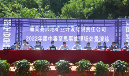 為增強職工安全防范意識,提高應急處置能力。7月7日,興地公司在善車峪西溝185二坑組織開展了“中毒窒息事故”應急救援演練。特邀潼關縣應急管理局局長楊宏亮、集團公司安保部主任李延彤等到場觀摩指導。公司黨委書記、執行董事劉曉東、黨委副書記、總經理王和平等出席演練活動。
